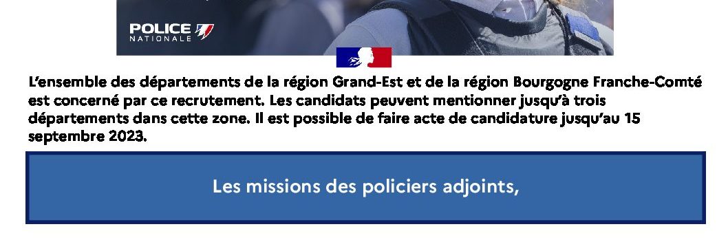 Un nouveau recrutement de policier adjoint est ouvert…. sur la zone Est !