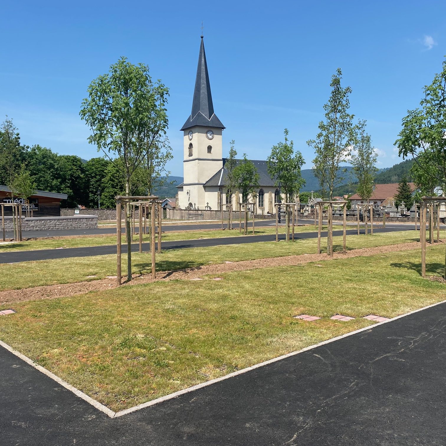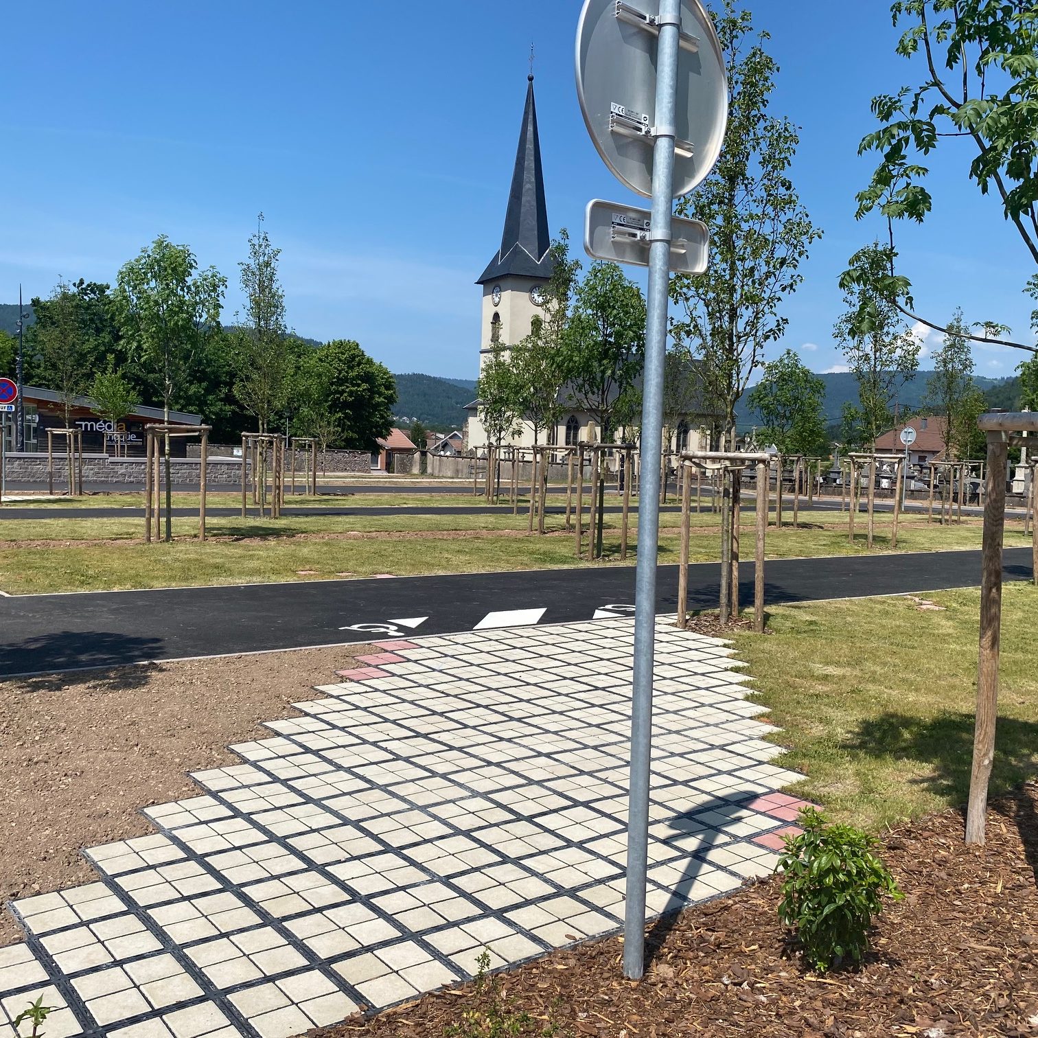 Les travaux du centre bourg 1ère phase sont terminés ! L’aire de jeux a été déplacée pour se rapprocher des escaliers et ainsi permettre un accès plus direct pour les élèves sortant de l’école sans besoin de traverser le parking pour y accéder. (l’aire de jeux est inaccessible pour l’instant car elle reste en attente de validation de la commission de sécurité, elle sera remise en service prochainement). Les chemins d’accès, les espaces verts et les parkings ont pris forme et des figurines de passage piéton ont été installées pour plus de visibilité. Ce centre bourg permet de dynamiser le cœur du village par ses installations (aire de jeux, le terrain de pétanque proche de la zone arborée) tout en sécurisant ses habitants grâce à ses aménagements spécifiques (zone 30 en place, murets de protection, etc.). un bel espace multigénérationnel s’ouvre aux habitants