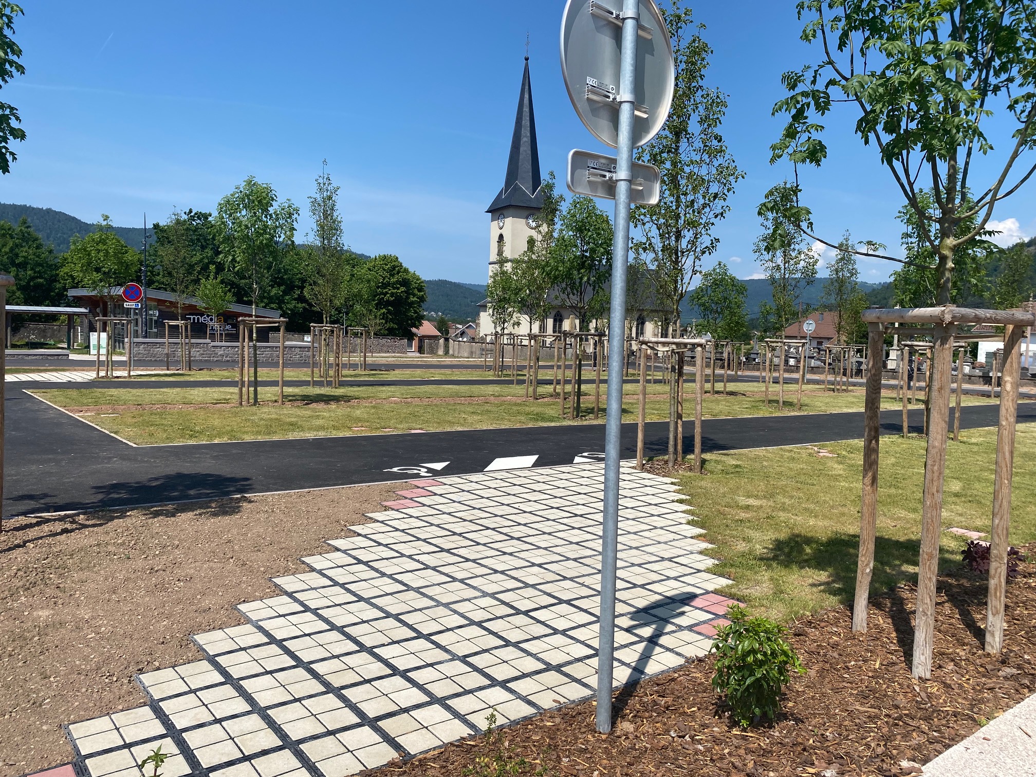 Les travaux du centre bourg 1ère phase sont terminés ! L’aire de jeux a été déplacée pour se rapprocher des escaliers et ainsi permettre un accès plus direct pour les élèves sortant de l’école sans besoin de traverser le parking pour y accéder. (l’aire de jeux est inaccessible pour l’instant car elle reste en attente de validation de la commission de sécurité, elle sera remise en service prochainement). Les chemins d’accès, les espaces verts et les parkings ont pris forme et des figurines de passage piéton ont été installées pour plus de visibilité. Ce centre bourg permet de dynamiser le cœur du village par ses installations (aire de jeux, le terrain de pétanque proche de la zone arborée) tout en sécurisant ses habitants grâce à ses aménagements spécifiques (zone 30 en place, murets de protection, etc.). un bel espace multigénérationnel s’ouvre aux habitants