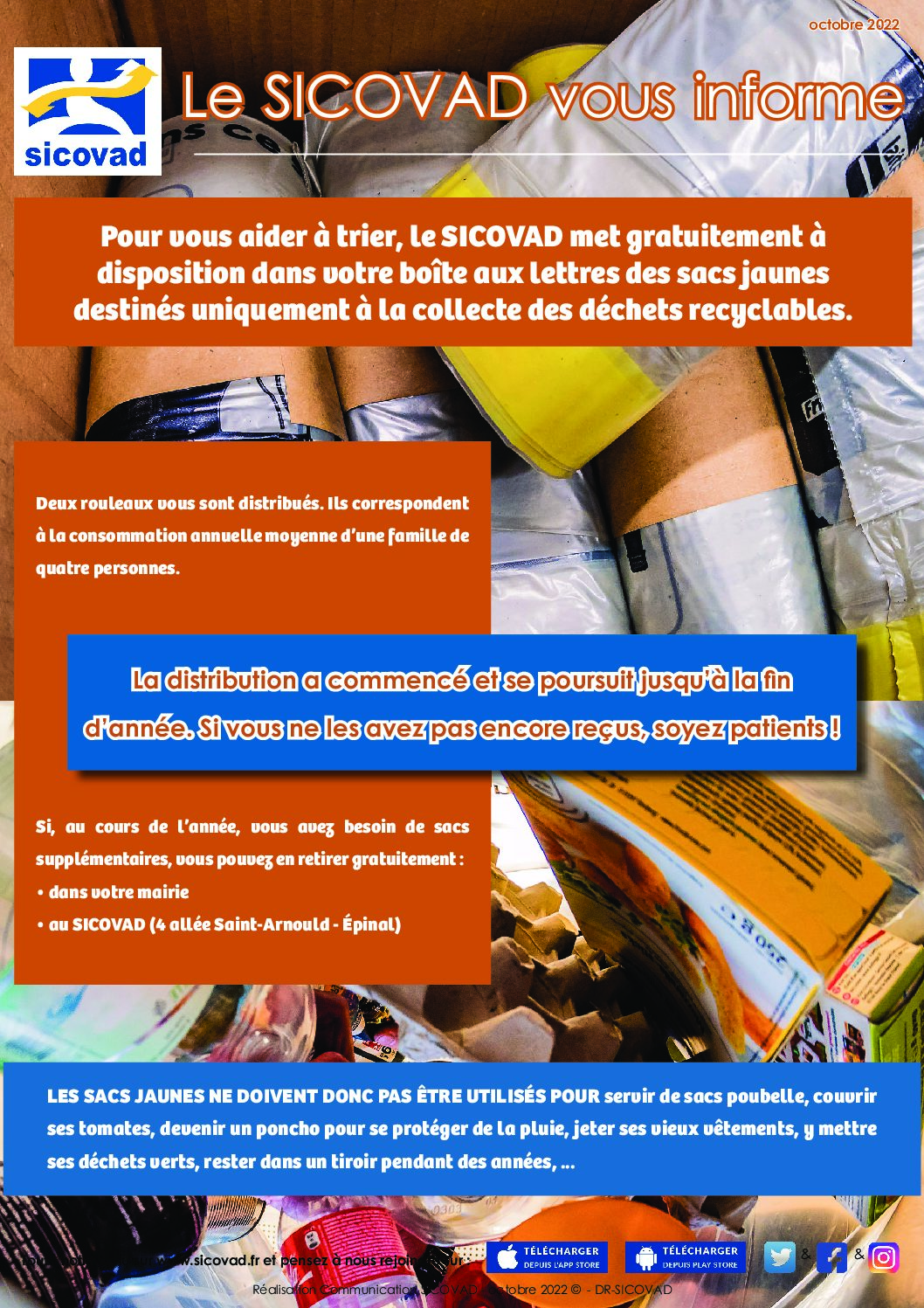 Oct272022ActualitésOrdures ménagères Navigation de commentaireOnglet précédent Onglet précédent PERMANENCES ET RÉUNION FRANCE RENOVOnglet suivantOnglet suivantMEDIATHEQUE NOVEMBRE 2022Plus d'actualités ?PRELEVEMENT AUTOMATIQUE POUR FACTURES EAU25 novembre 2025INFO MAIRIE : CÉRÉMONIE PATRIOTIQUE MARDI 11 NOVEMBRE A 10H307 novembre 2025S’IMPLIK : POUR LES JEUNES QUI S’INVESTISSENT DANS LES VOSGES30 octobre 2025LE SICOVAD VOUS INFORME… SEMAINE EUROPÉENNE DE LA RÉDUCTION DES DÉCHETS DU 22 AU 30 NOV. 202530 octobre 2025DISTRIBUTION ANNUELLE DE SACS JAUNES10 octobre 2025LETTRE D’INFORMATION : MÉDIATHÈQUE LE CERCLE OCTOBRE 20251 octobre 2025