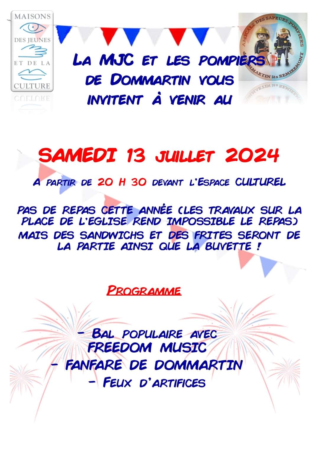 La MJC et les POMPIERS de Dommartin-lès-Remiremont vous invitent à venir au
