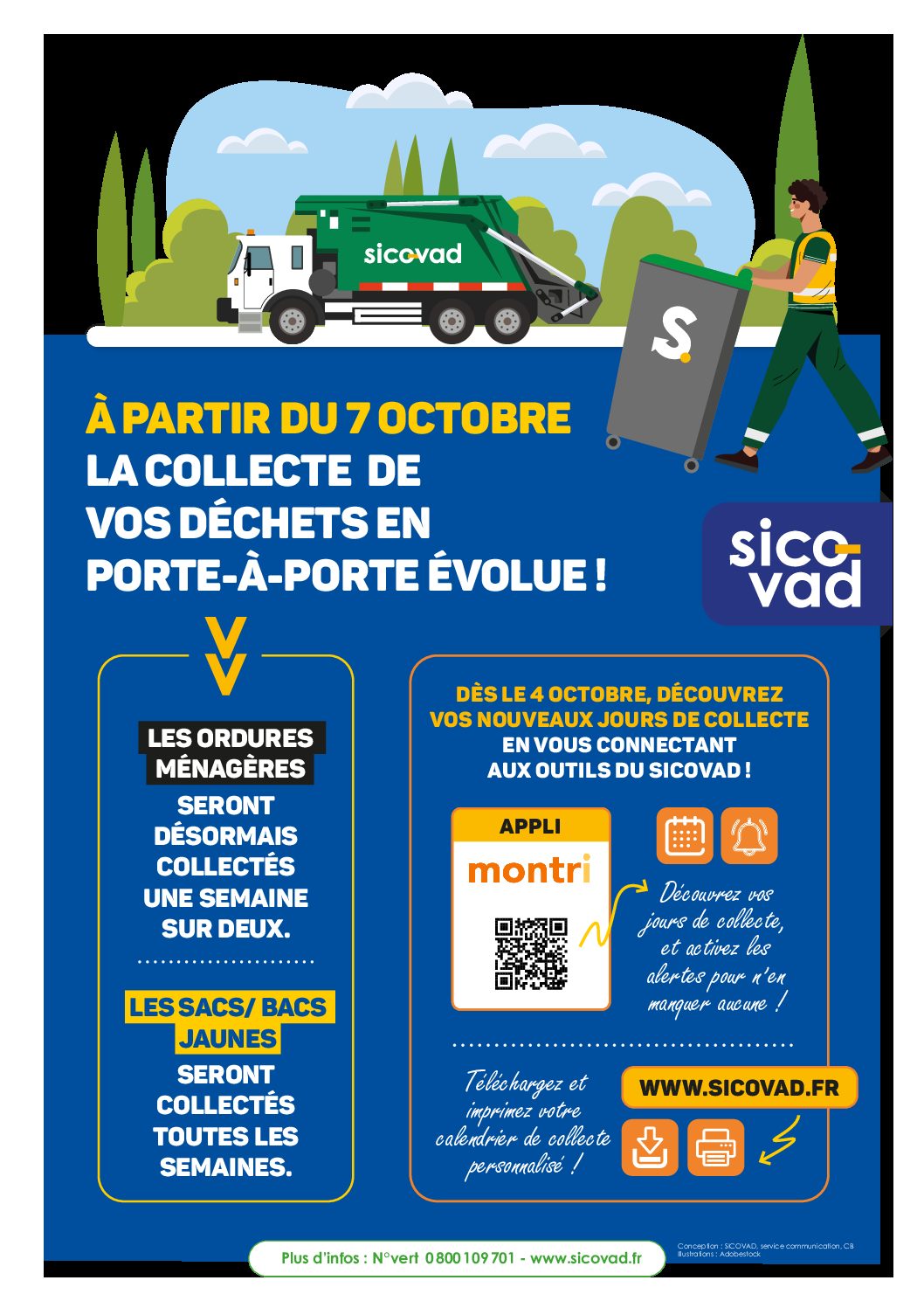 Attention, à partir du vendredi 18 octobre pour notre commune, votre container sera collecté une semaine sur deux.