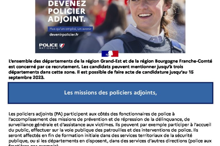 Un nouveau recrutement de policier adjoint est ouvert…. sur la zone Est !