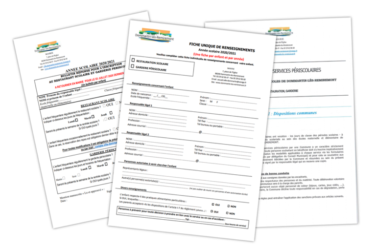 RESTAURANT SCOLAIRE ET GARDERIE : IMPRIMÉS EN LIGNE