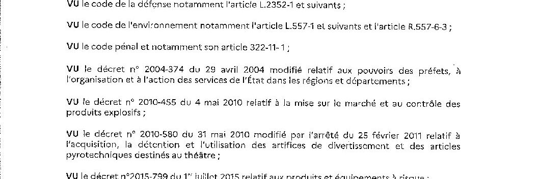 Arrêté Préfectoral réglementant la vente, le transport de produits combustibles, d’acide, d’artifice de divertissement, d’objets dangereux ainsi que la détention et le transport d’armes ou d’objets pouvant constituer une arme par destination dans le département des Vosges Vous trouverez ci-dessous le lien correspondant à l’arrêté cité : 20230630110410978