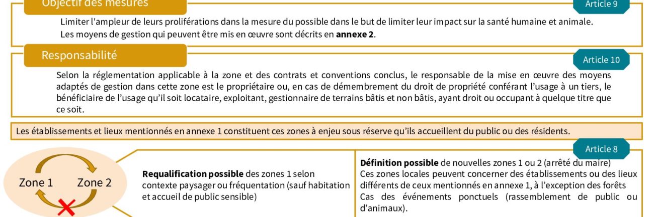 L’arrêté de 2022 est abrogé et remplacé par l’arrêté préfectoral n2024-2367 du 25/06/2024 visant à limiter l’exposition des populations aux soies urticantes des chenilles processionnaires du pin (Thaumetopoea pityocampa) et du chêne (Thaumetopoea processionea L.), que vous trouverez ci-joint. Une notice explicative ci-jointe en facilite la lecture. Arrêté Préfectoral du 25 juin 2024