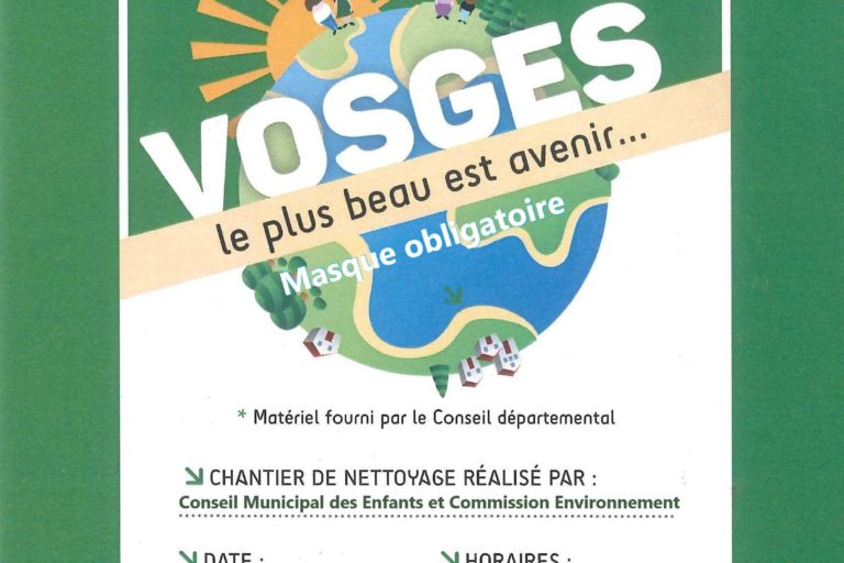 le nettoyage de printemps est organisé par le CME et la Commission Environnement. Le nettoyage de printemps aura lieu le samedi 20 mars de 9h à 11 h30, dans le respect des gestes barrières. Le RDV est donné derrière la mairie. En raison des mesures sanitaires en vigueur, exceptionnellement il n’y aura pas de pot…