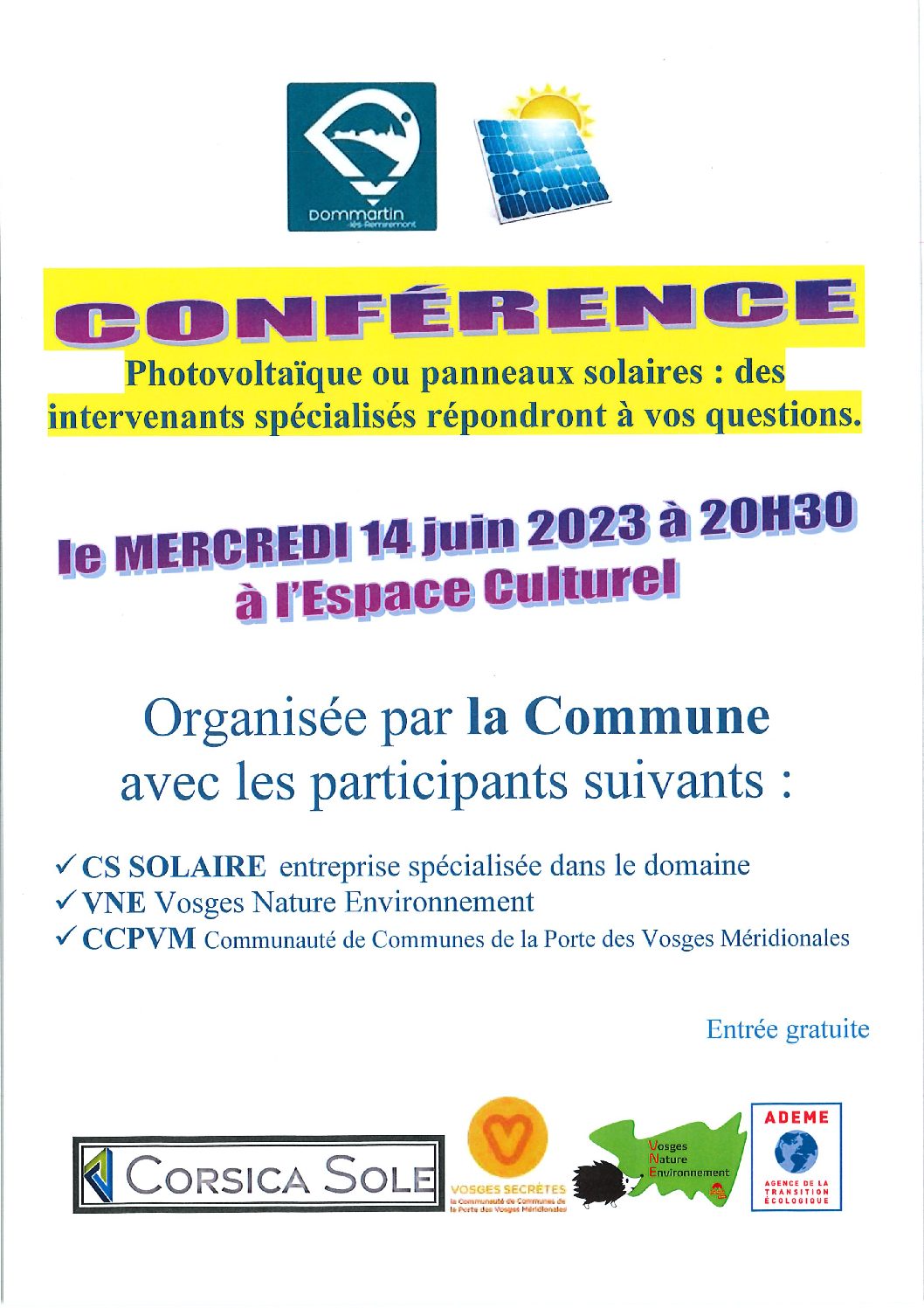 Pour en savoir un peu plus sur le photovoltaïque et le solaire, une conférence ouverte au public est programmée :