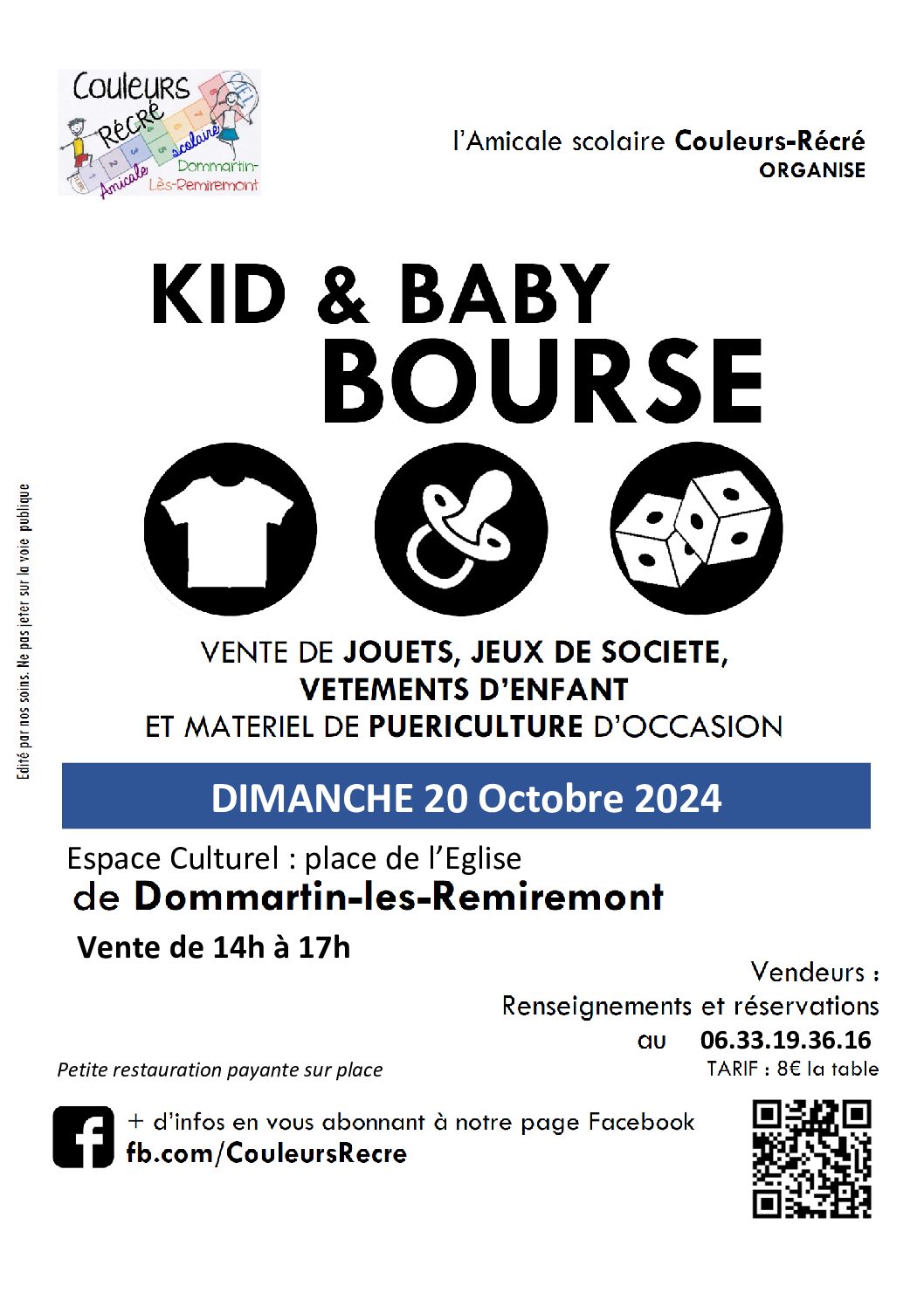 L’Amicale Scolaire Couleurs Récré organise une kid et baby bourse.