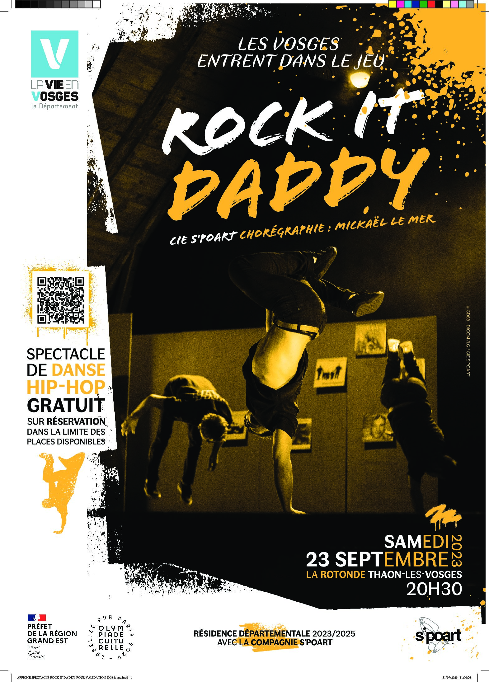 Dans le cadre de l’Olympiade Culturelle, le Conseil Départemental a le plaisir de vous inviter à la représentation de Rock it Daddy de la compagnie de danse Hip-Hop S’poart.