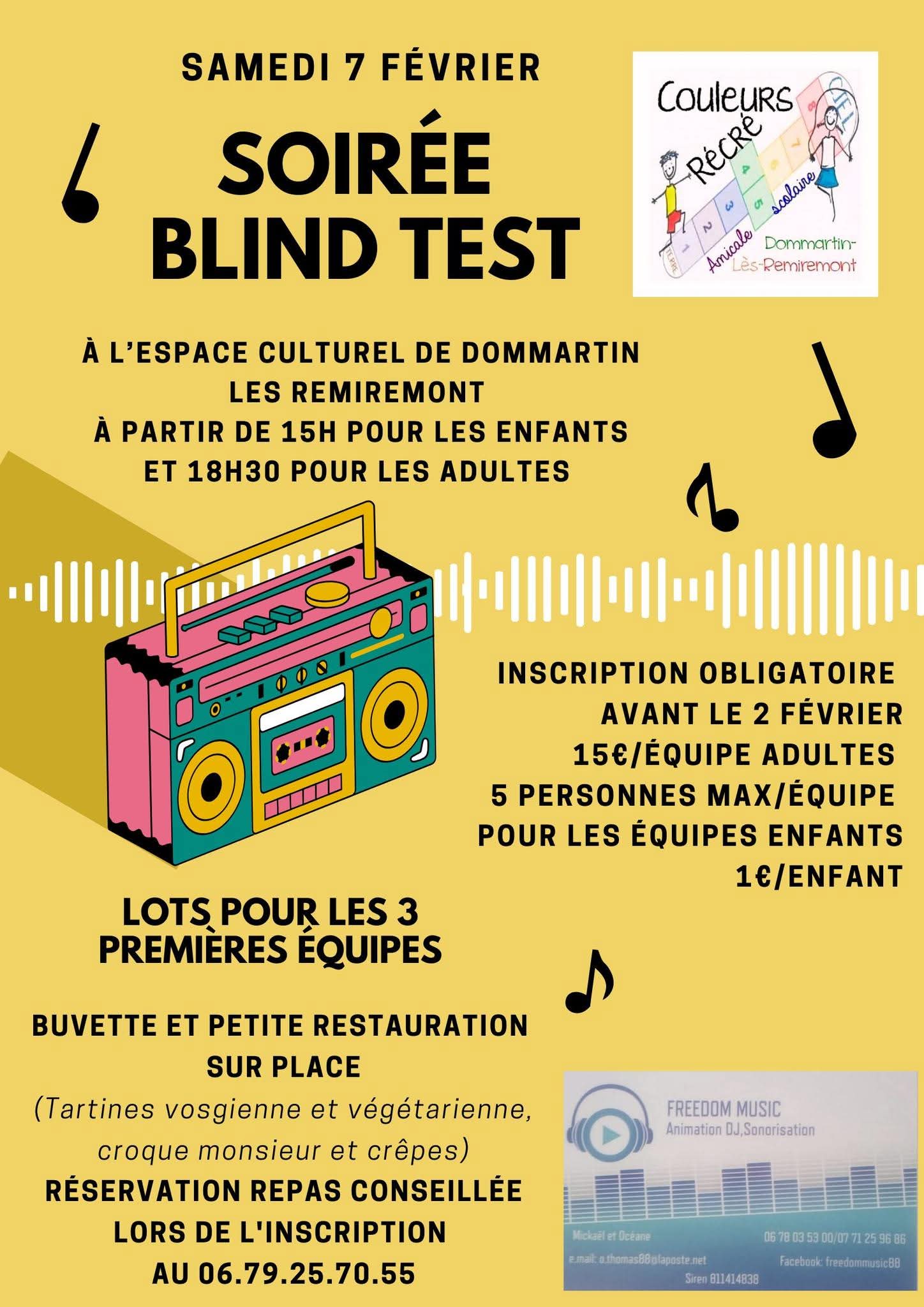 SOIRÉE BLIND TEST ORGANISÉE PAR COULEURS RÉCRÉ LE SAMEDI 7 FÉVRIER 2026