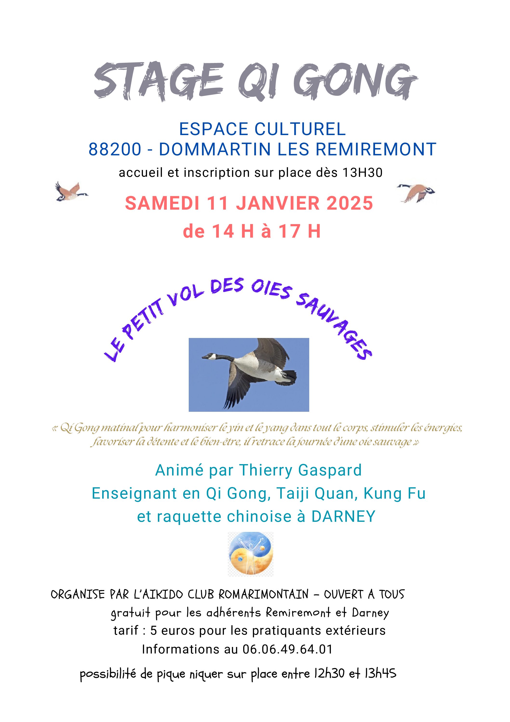 Stage Qi GONG à l’Espace Culturel le samedi 11 janvier 2025 de 14h à 17h.