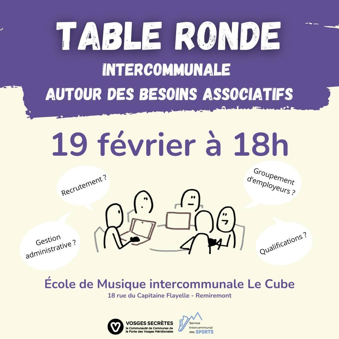 TABLE RONDE 19 FÉVRIER 2024 + Ajouter à mon Agenda Google+ Exporter vers iCal DateFév 19 2024Expired! Heure 18 h 00 min TarifGRATUIT LieuEspace CulturelDommartin-Lès-Remiremont Catégorie prochain-evenement Vie municipaleOrganisateur École de musique le cube intercommunale Partagez cet événement