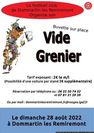 Le Football Club de Dommartin organise son traditionnel vide grenier dans les rues du centre de Dommartin le dimanche 28 août.