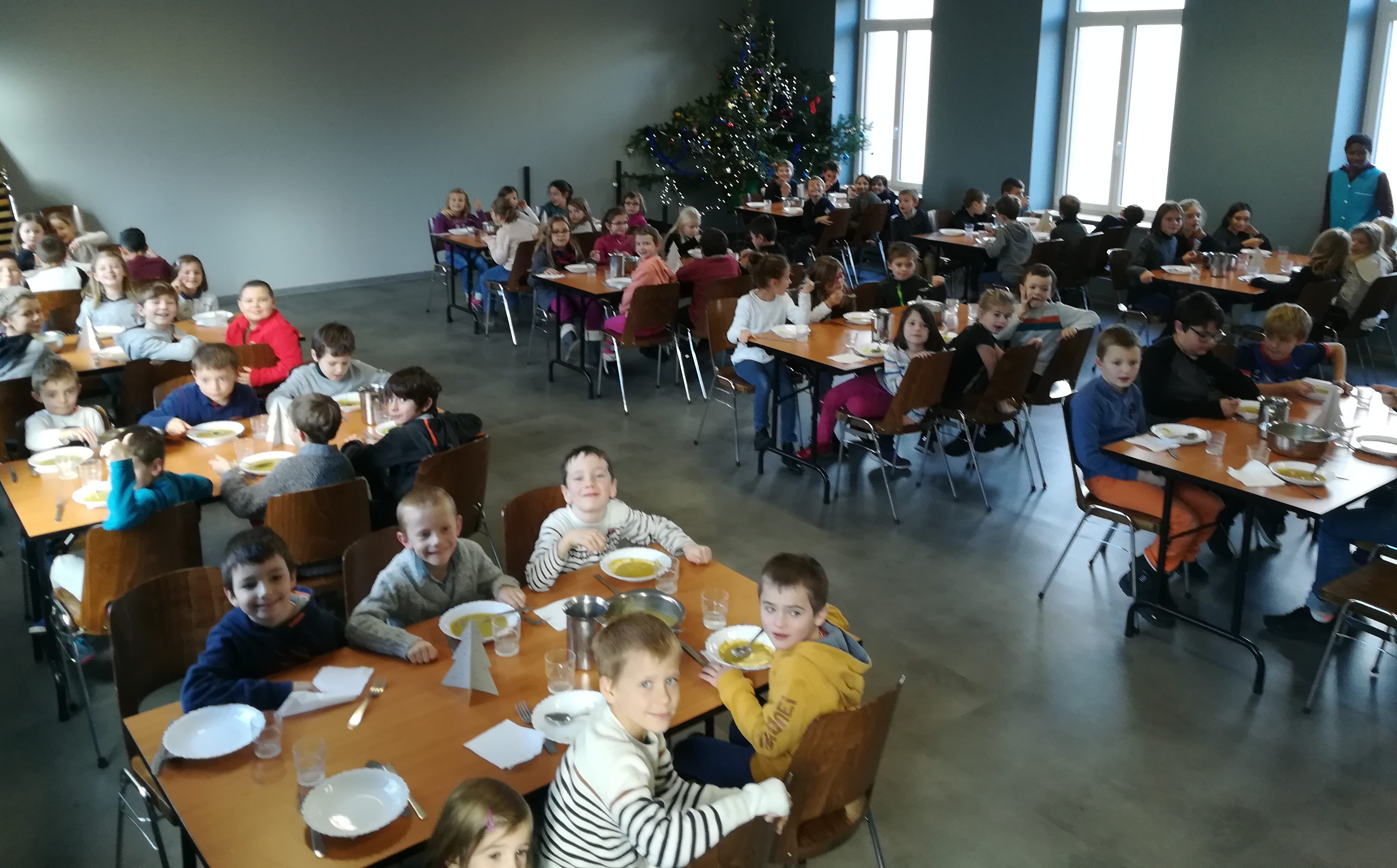 Le restaurant est ouvert pendant les périodes scolaires, les lundis, mardis, jeudis et vendredis. Les repas de midi, entièrement préparés et élaborés sur place, sont destinés aux enfants des écoles ainsi qu’au personnel enseignant et communal. Il est servi chaque jour entre 100 à 110 repas.